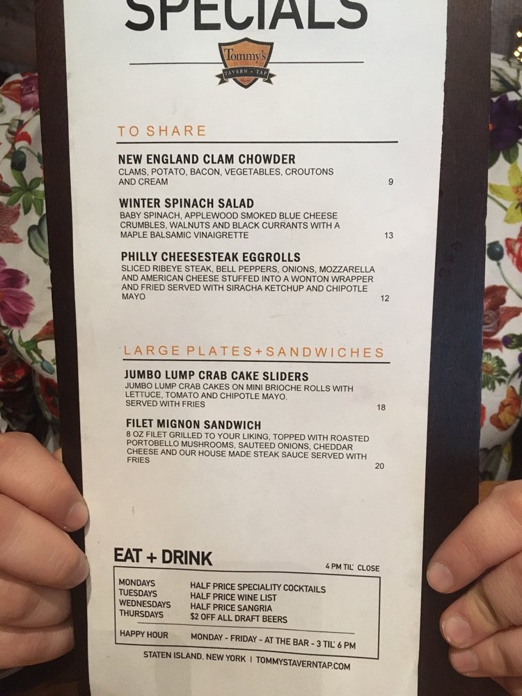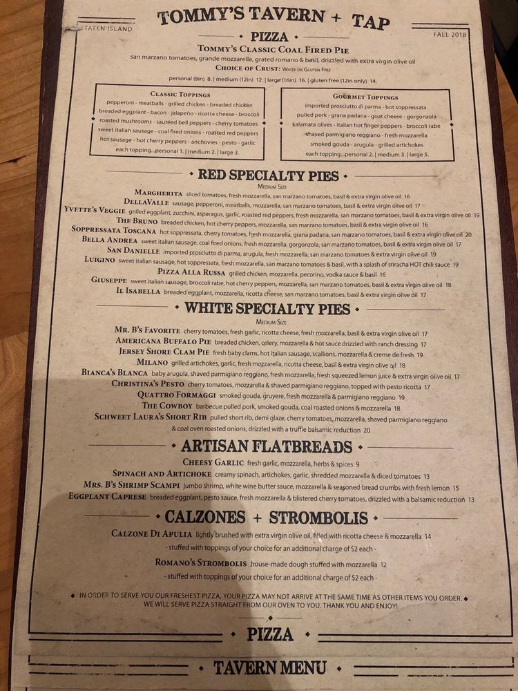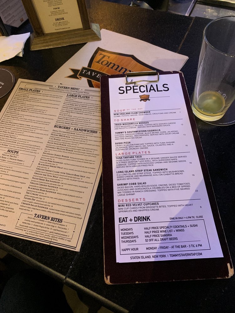 Tommy's Tavern + Tap in Staten Island offers a diverse menu of bar favorites, including coal-fired wings and unique Asian fusion dishes like Kung Pao Chicken Dumplings. The restaurant provides excellent service, with friendly and attentive staff like Nicholas and Sal. The ambiance is casual and trendy, perfect for groups, families, or a date night. While the food quality is top-notch, some customers have noted occasional service issues. The menu boasts a variety of options, from traditional pub fare like wings and ribs to more elevated dishes like Bulgogi Tacos and Crispy Buttermilk Chicken Sandwiches. Whether you're looking for a quick bite or a more leisurely meal, Tommy's Tavern + Tap has something for everyone. The daily specials and half-off cocktails on Mondays make it a great spot for a night out.